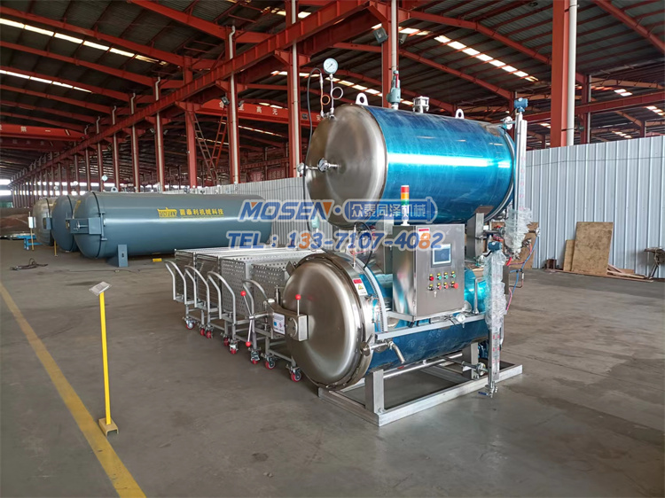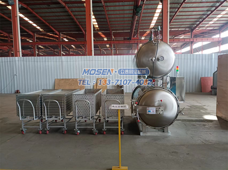 殺菌鍋設備主要用于肉制品、水果罐頭、奶制品、豆制品、農副產品、飲料制品、蛋制品、水產品、八寶粥、調味品、食用菌、寵物食品、湯和熟食以及果蔬等食品的殺菌。殺菌鍋由鍋體、鍋蓋、開啟裝置、鎖緊鍥塊、安全聯鎖裝置、軌道、殺菌盤、蒸汽噴管及若干管口、保溫層、熱水罐等組成。