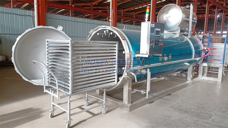 殺菌鍋設備主要用于肉制品、水果罐頭、奶制品、豆制品、農副產品、飲料制品、蛋制品、水產品、八寶粥、調味品、食用菌、寵物食品、湯和熟食以及果蔬等食品的殺菌。殺菌鍋由鍋體、鍋蓋、開啟裝置、鎖緊鍥塊、安全聯鎖裝置、軌道、殺菌盤、蒸汽噴管及若干管口、保溫層、熱水罐等組成。